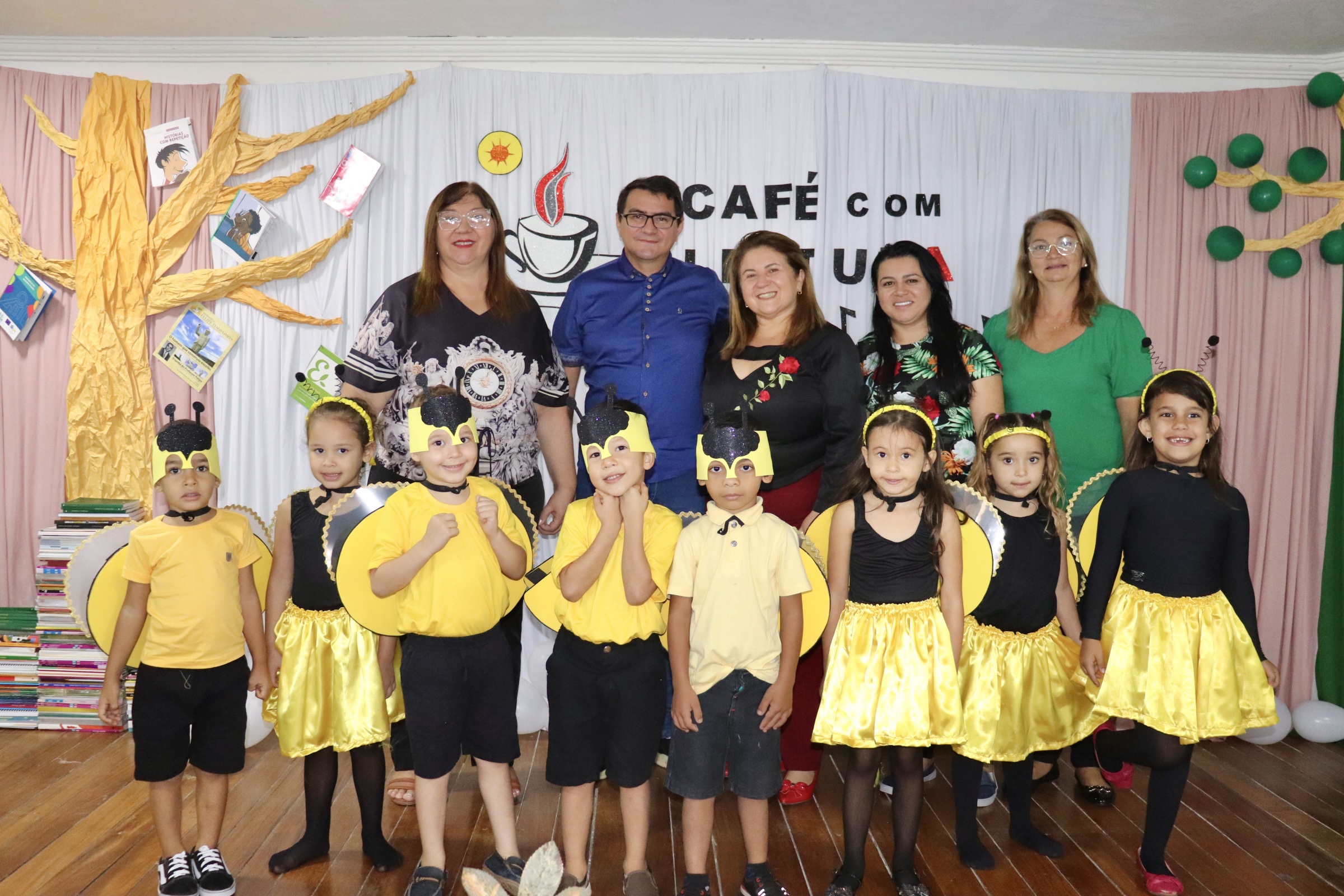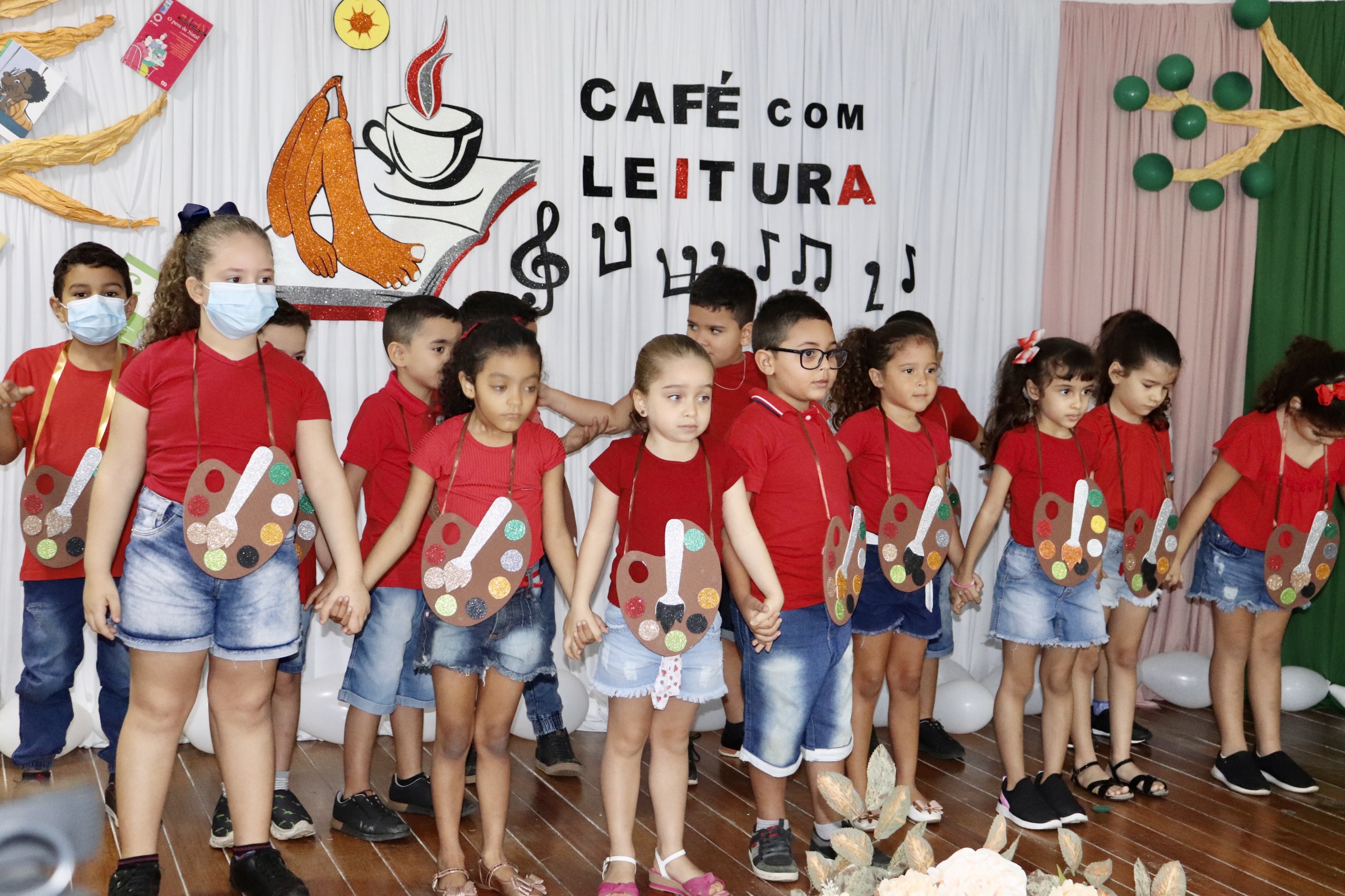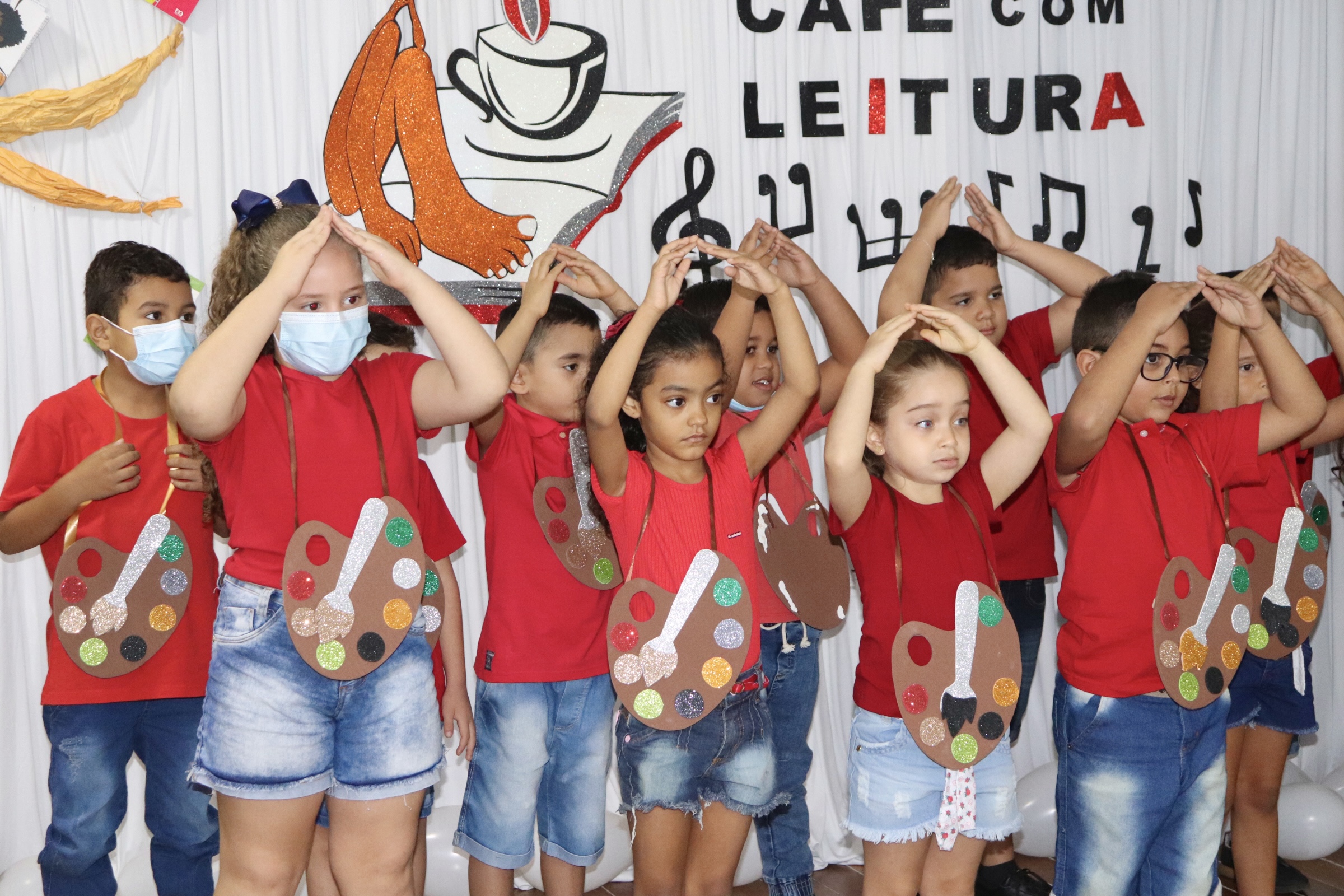 Dando prosseguimento ao Café com Leitura, foi apresentada a música “Aquarela” de Toquinho, pelos alunos da turma de Pré I da EMEF Maria do Socorro Farias de Macedo, coordenados pela professora Silvana Santos. Após esta apresentação, os alunos do Pré I e Pré II do Centro de Educação Infantil Marta Maria apresentaram a música “Abelhas” de Vinícius de Moraes, coordenados pelas professoras Paula e Hilene.