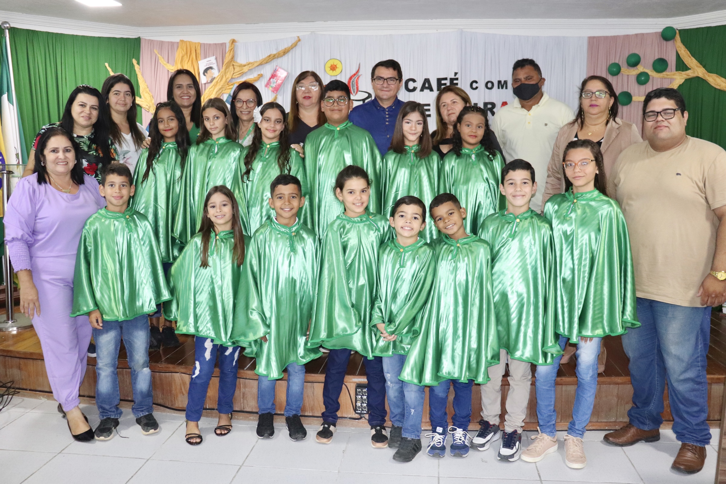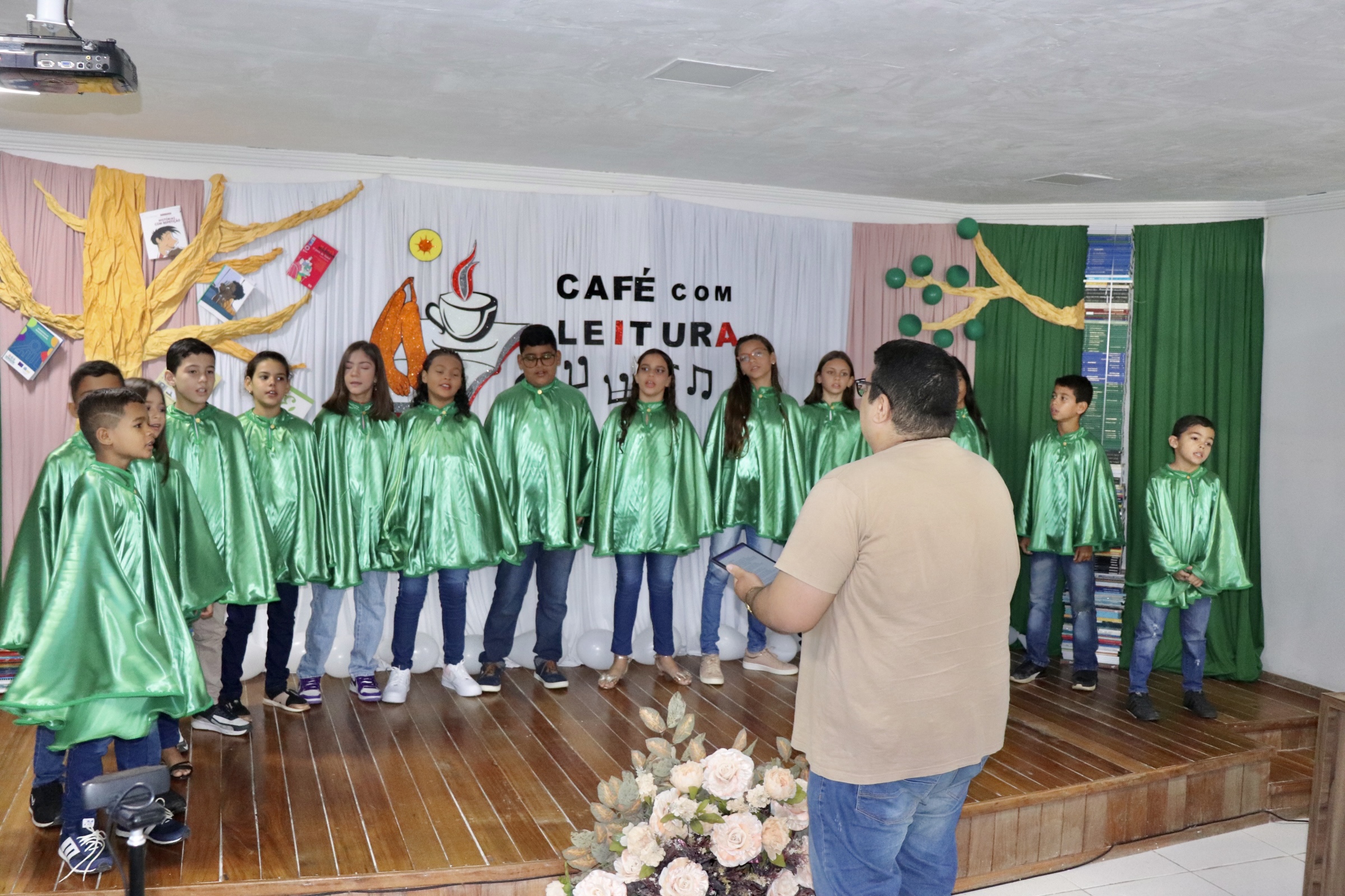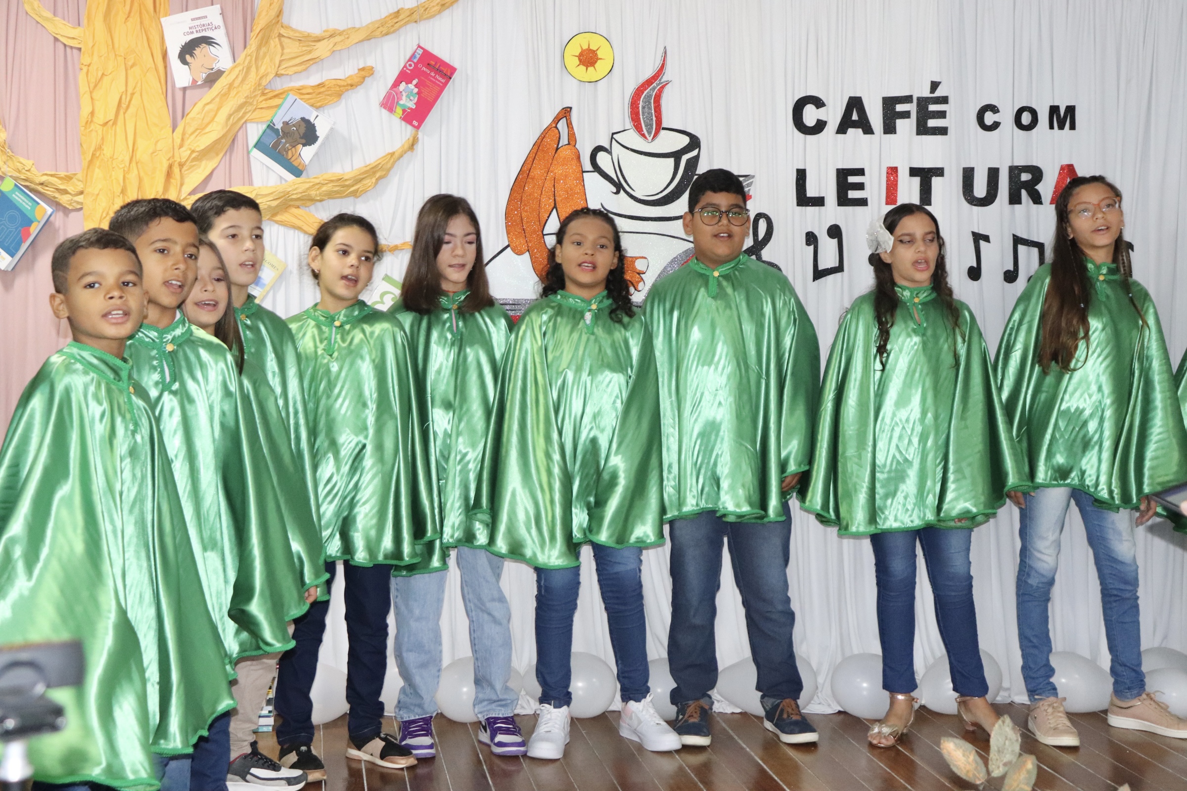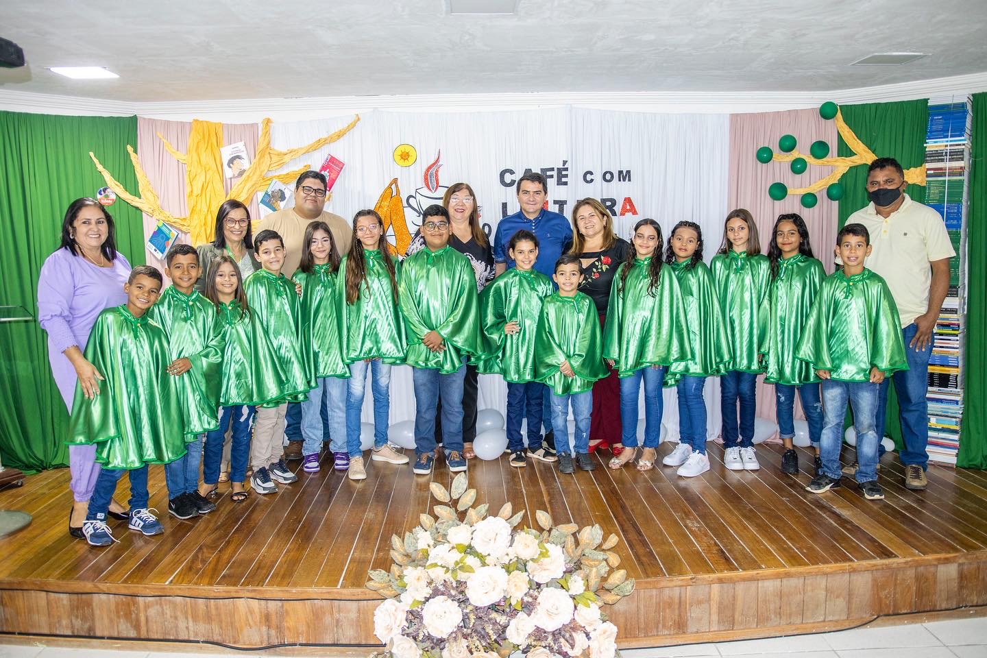 Encerrando oficialmente o Café com Leitura, com maestria, o Coral da EMEF Pedro Henriques da Costa, coordenado pelo instrutor musical, Cássio Lima, apresentaram as músicas “O Caderno”, de Toquinho, “Era uma vez”, de Sandy e Júnior, e “Asa Branca”, de Luís Gonzaga.