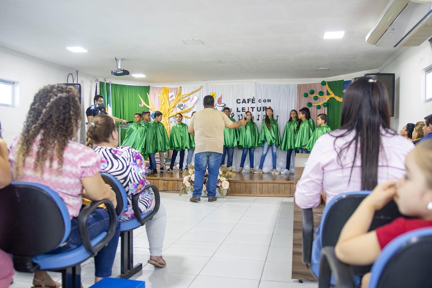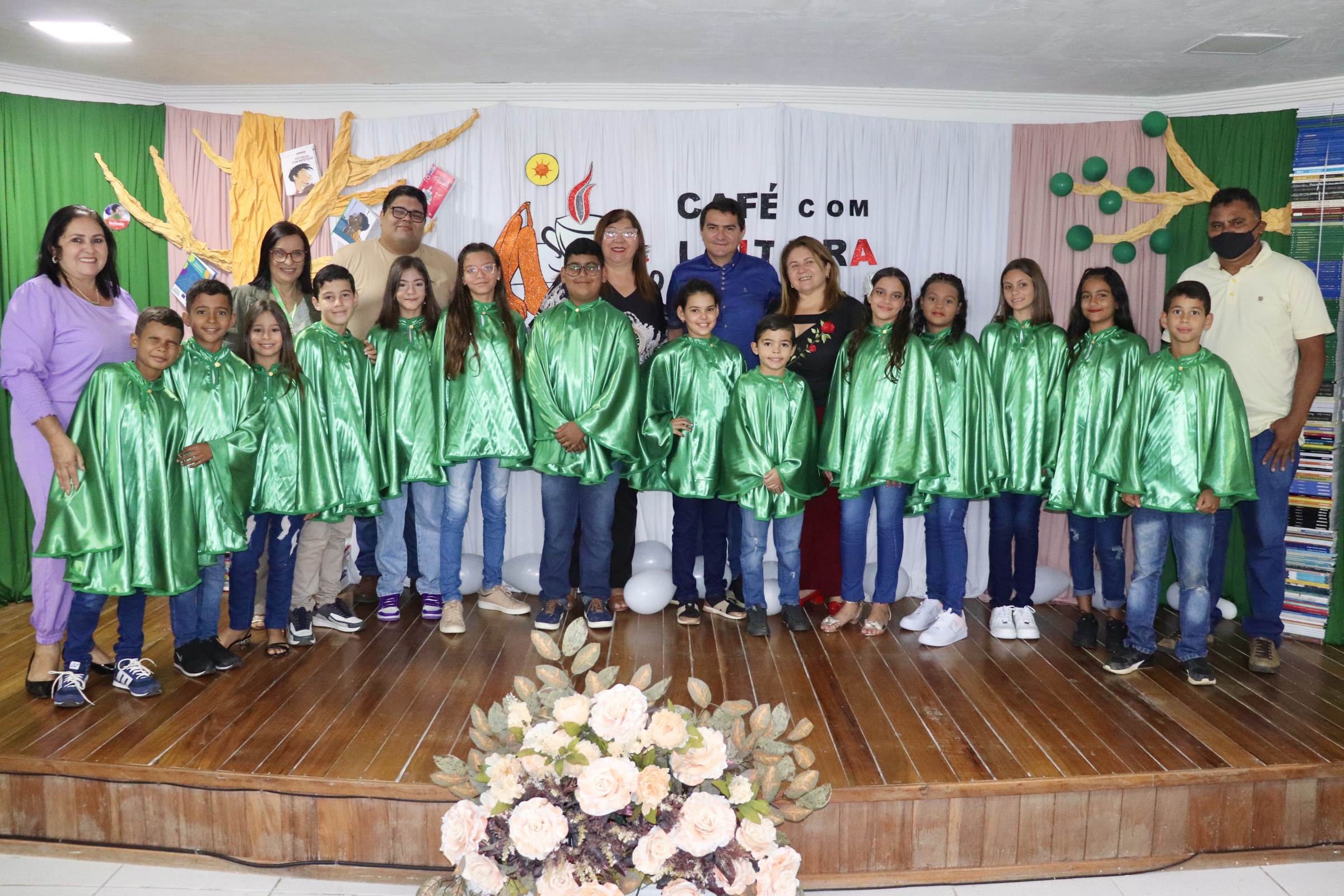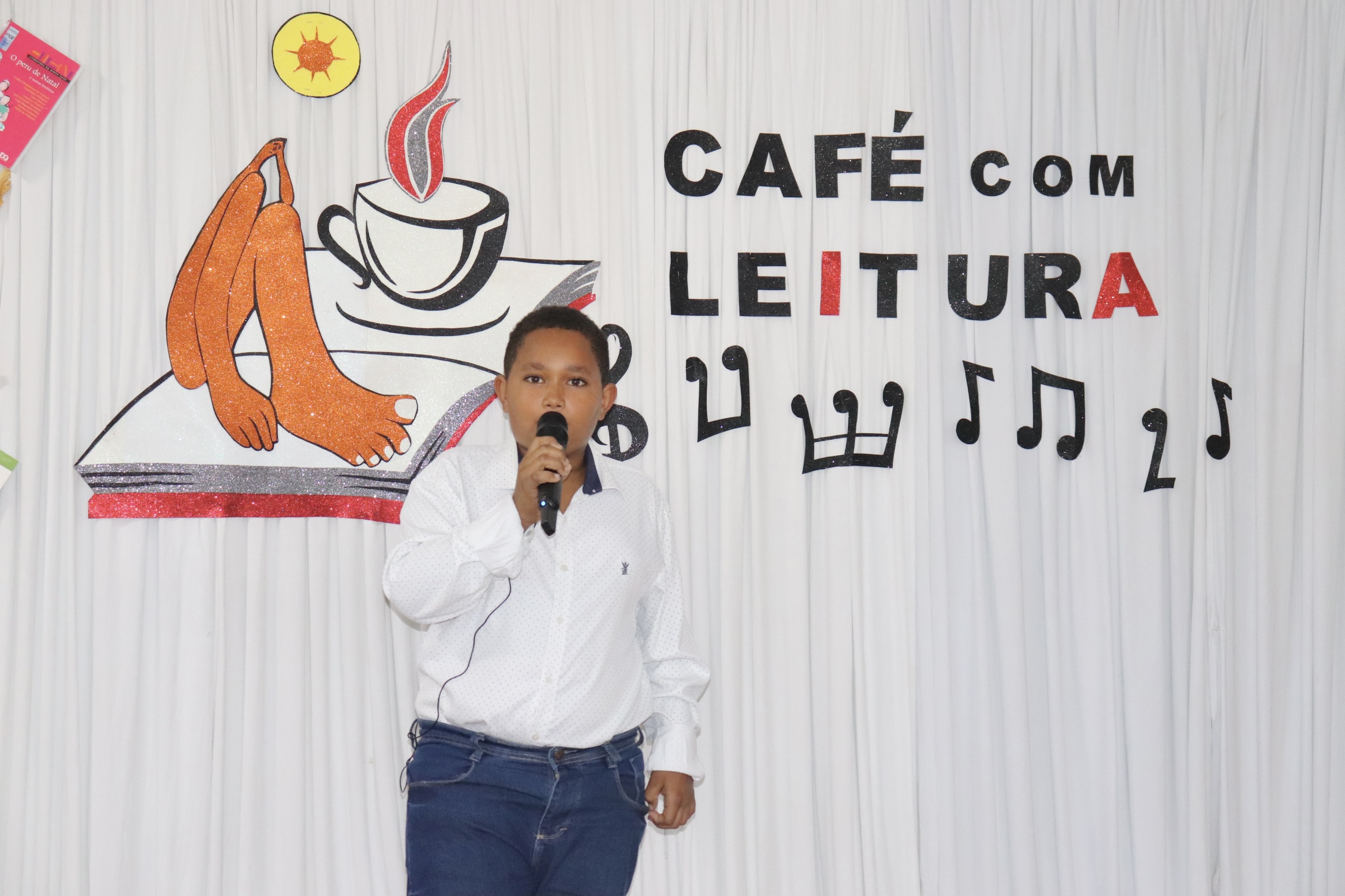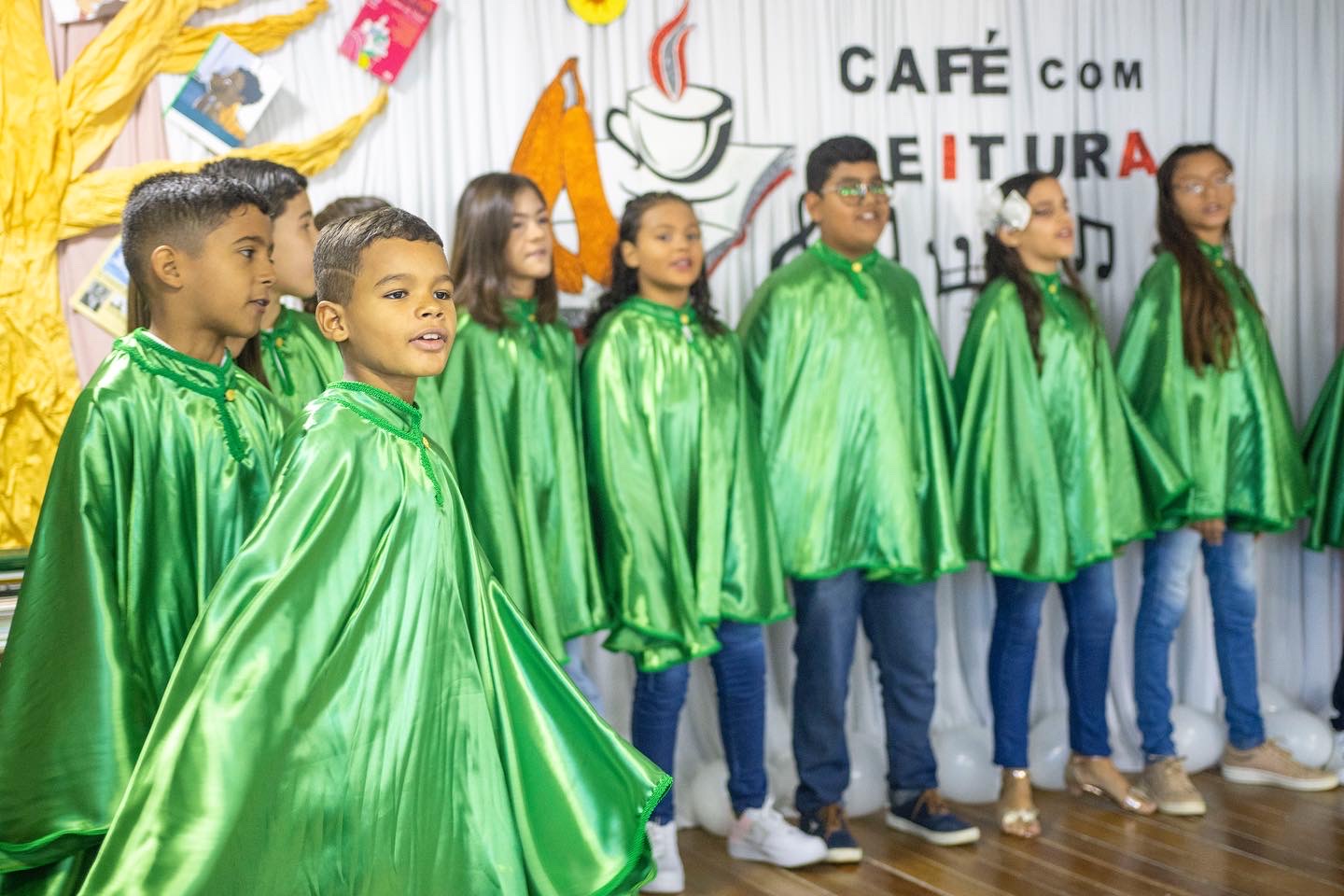 Encerrando oficialmente o Café com Leitura, com maestria, o Coral da EMEF Pedro Henriques da Costa, coordenado pelo instrutor musical, Cássio Lima, apresentaram as músicas “O Caderno”, de Toquinho, “Era uma vez”, de Sandy e Júnior, e “Asa Branca”, de Luís Gonzaga.