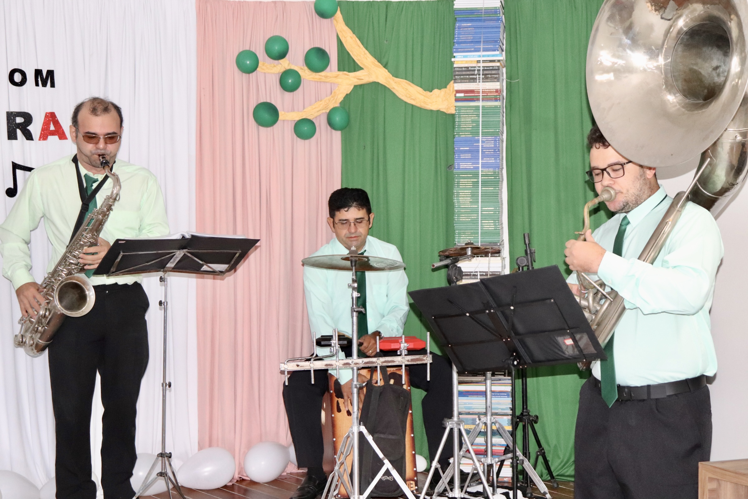 Em seguida, os alunos do Atendimento Educacional Especializado (AEE) das escolas municipais Ana Maria Gomes e Presidente Tancredo de Almeida Neves, coordenados pelas professoras Lenilda Azevedo e Ionara Dantas, juntamente com a coordenadora do AEE, Geana Souza. A apresentação artística realizada foi com a música “O Caderno”, de Toquinho.