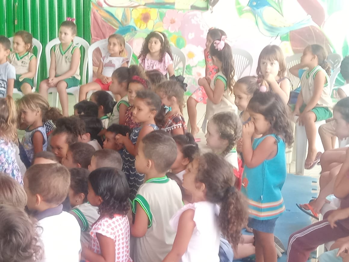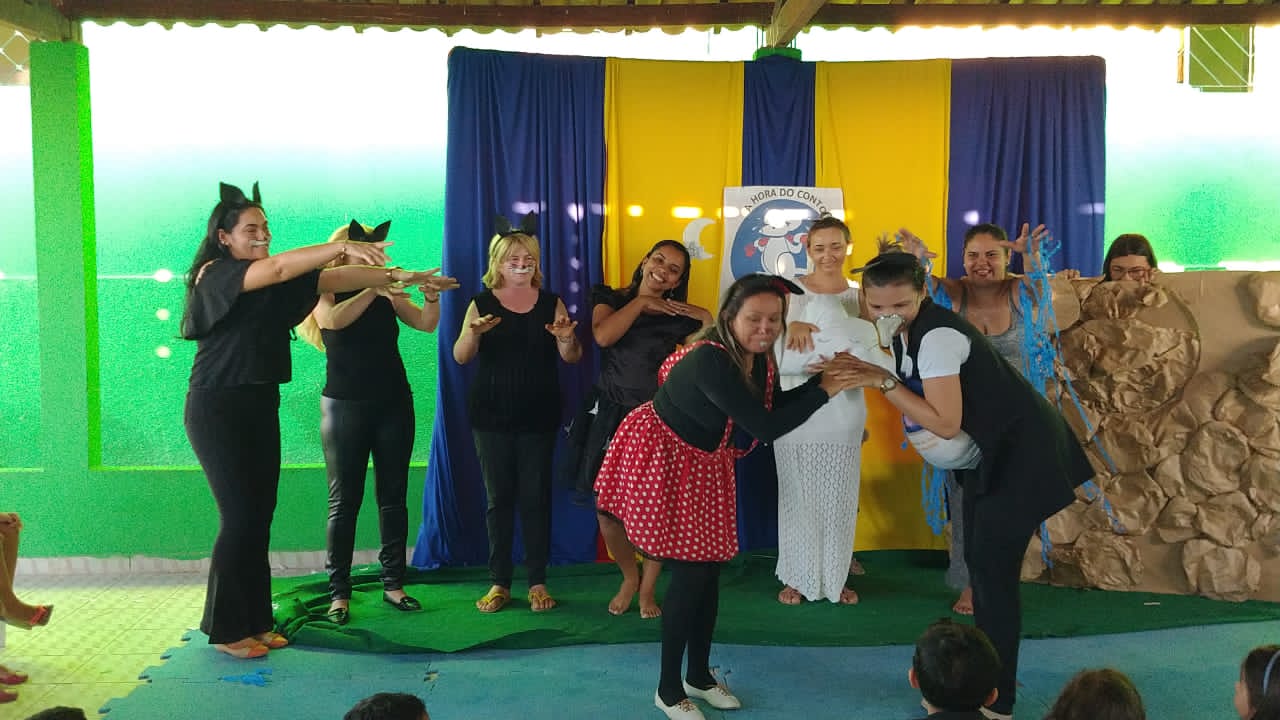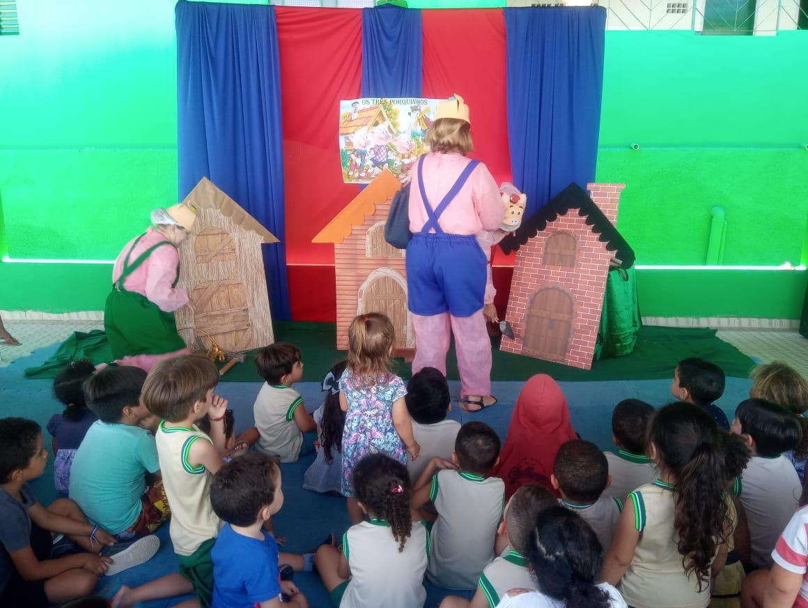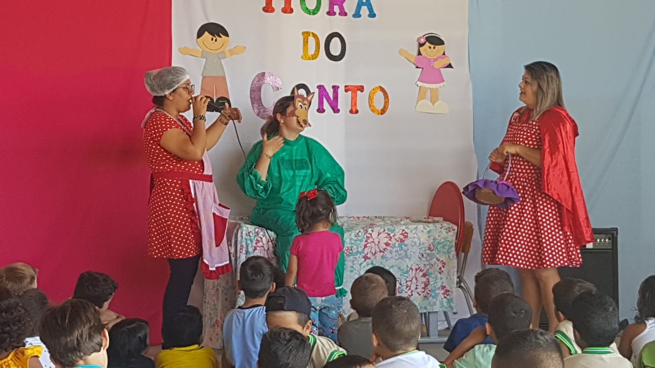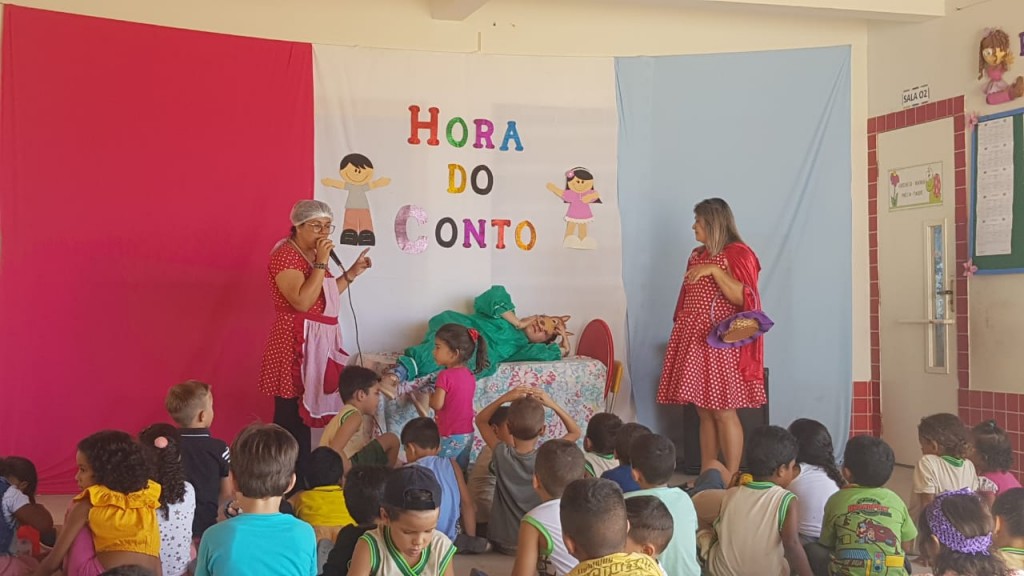 turno da manhã, “Os Três Porquinhos” e no turno da tarde, o conto “O Rato”. “Escutar histórias é o início da aprendizagem para ser um bom