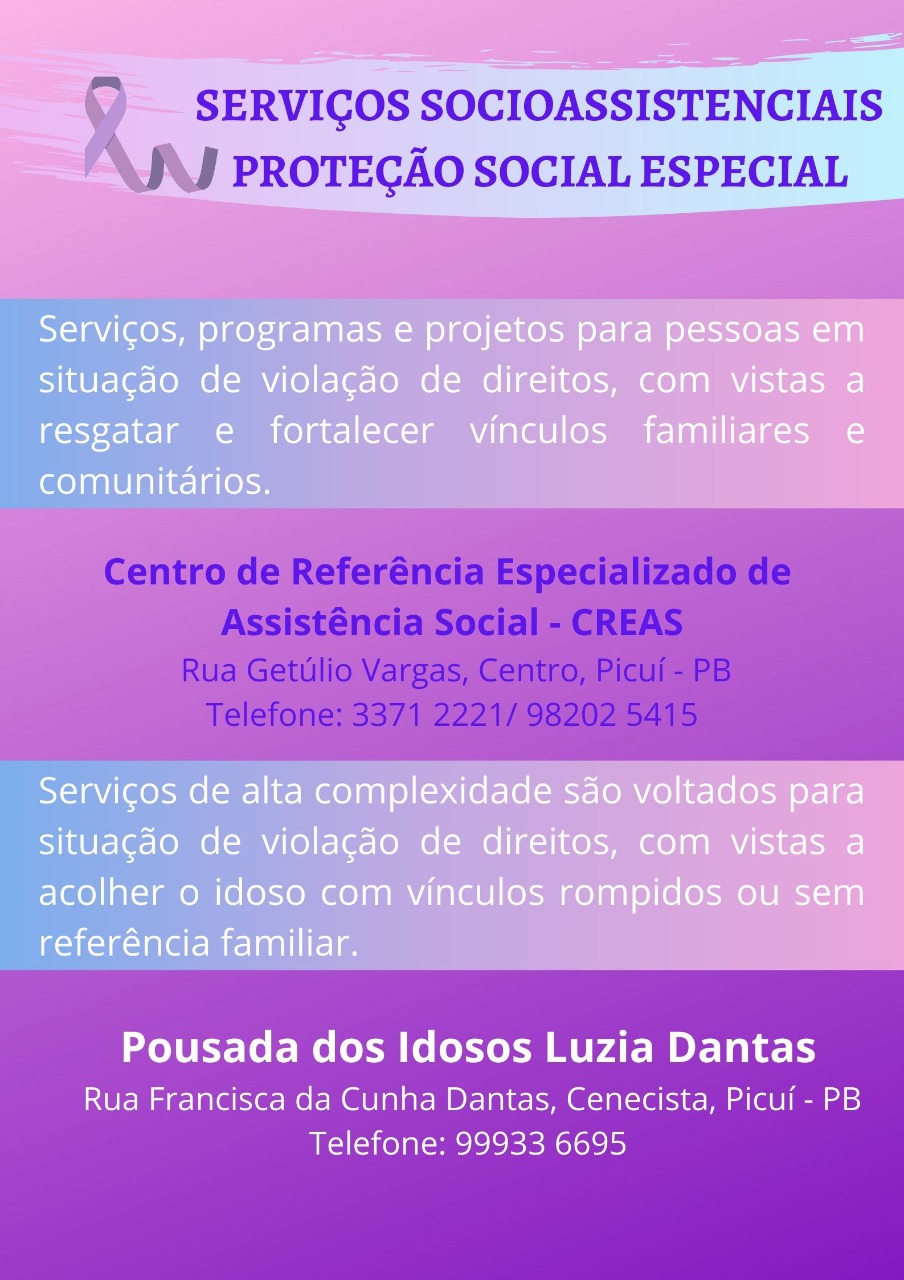 A Prefeitura Municipal de Picuí - Governo da Participação, através da Secretaria de Assistência Social, ao longo desta semana está realizando a Campanha Municipal de Enfrentamento à Violência contra a Pessoa Idosa, juntamente com os órgãos da rede de proteção do município, a fim de conscientizar toda a população picuiense acerca do combate à violência contra os idosos.