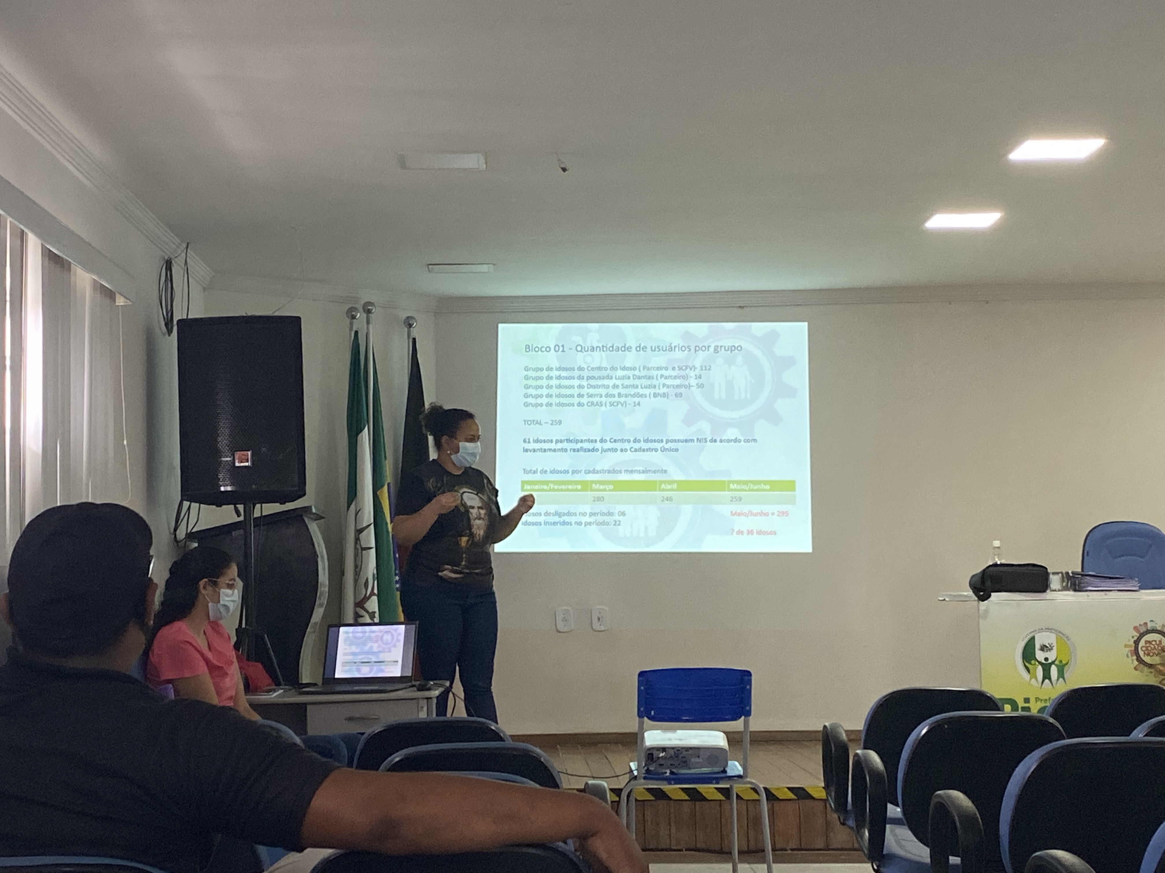 A ocasião faz parte do planejamento do Percurso Formativo da Assistência Social e apresentação que está sendo realizada pela coordenadora Rejane da Vigilância Socioassistencial dos relatórios com os diagnósticos e resultados dos atendimentos da rede socioassistencial.