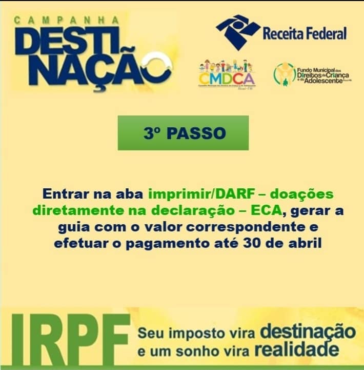 A seguir, encontram-se disponíveis os três passos para poder participar da Campanha Destinação: