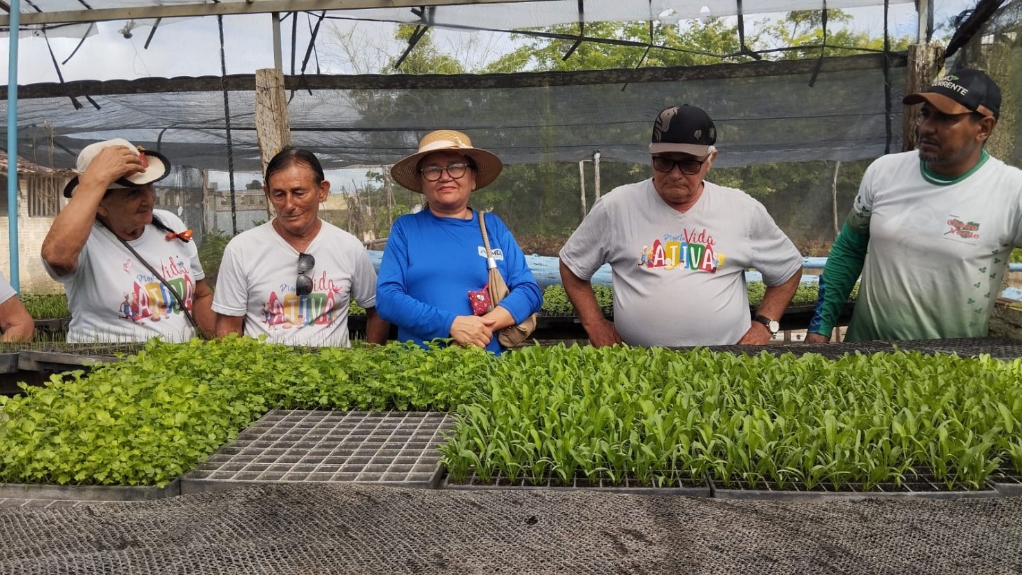 Durante a visita, os idosos foram recepcionados pelo técnico agrícola Sr. Guima, que conduziu o grupo pelos diferentes setores de produção do espaço. Os participantes conheceram o berçário de hortaliças, onde aprenderam sobre o processo de germinação e os cuidados essenciais no cultivo inicial de mudas.