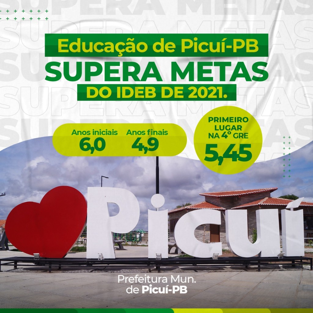 O resultado de um trabalho eficiente e de muita dedicação realizado pela secretaria de educação, escolas, gestão escolar e equipe técnica pedagógica no período de 2017 a 2019, no município de Picuí vem apresentando resultados bastante satisfatórios, considerando que a Rede Municipal de Ensino de Picuí alcançou a meta nacional dos Anos Iniciais e superou a meta projetada para 2021 destes, que era 4,8 a Rede Municipal alcançou 6,0, já nos Anos Finais a Meta era 4,5 e a Rede Municipal alcançou 4,9.