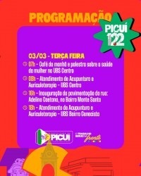 O município de Picuí se prepara para celebrar seus 122 anos de Emancipação Política com uma programação ampla e diversificada, que une ações voltadas à saúde, cultura, esporte, infraestrutura, fé e cidadania. De 02 a 22 de março, a cidade vivenciará dias intensos de atividades que reforçam o compromisso com o desenvolvimento e a valorização da população.