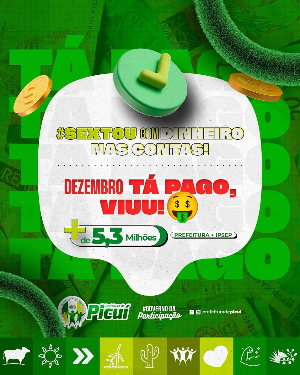 A Prefeitura Municipal de Picuí - Governo da Participação II, realizou com sucesso, nesta sexta-feira (20), o pagamento de seus servidores públicos, referente ao mês de dezembro de 2024. O pagamento do IPSEP também foi efetuado.
