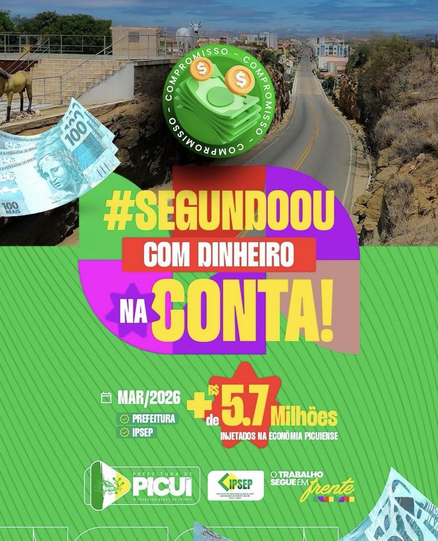 A Prefeitura de Picuí - Gestão ´O Trabalho segue em Frente´ - segue demonstrando compromisso e responsabilidade com a gestão pública ao garantir o pagamento dos servidores municipais dentro do prazo. No mês de março, mais de R$ 5,7 milhões foram injetados na economia local, com os salários sendo devidamente pagos no dia 30.