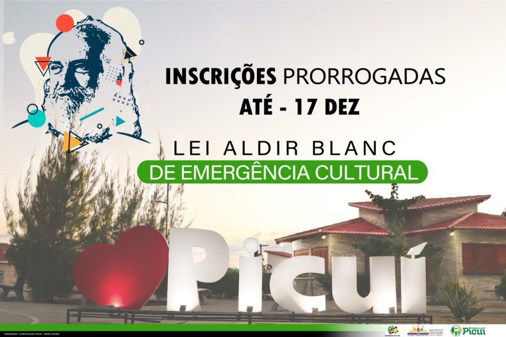 A Prefeitura Municipal de Picuí, através da Secretaria de Educação, Cultura e Desporto, resolve prorrogar até a próxima quinta-feira, dia 17, a inscrição para o Prêmio Cultura Viva, referente ao auxílio emergencial da Lei Aldir Blanc – Lei federal nº 14.017/2020.