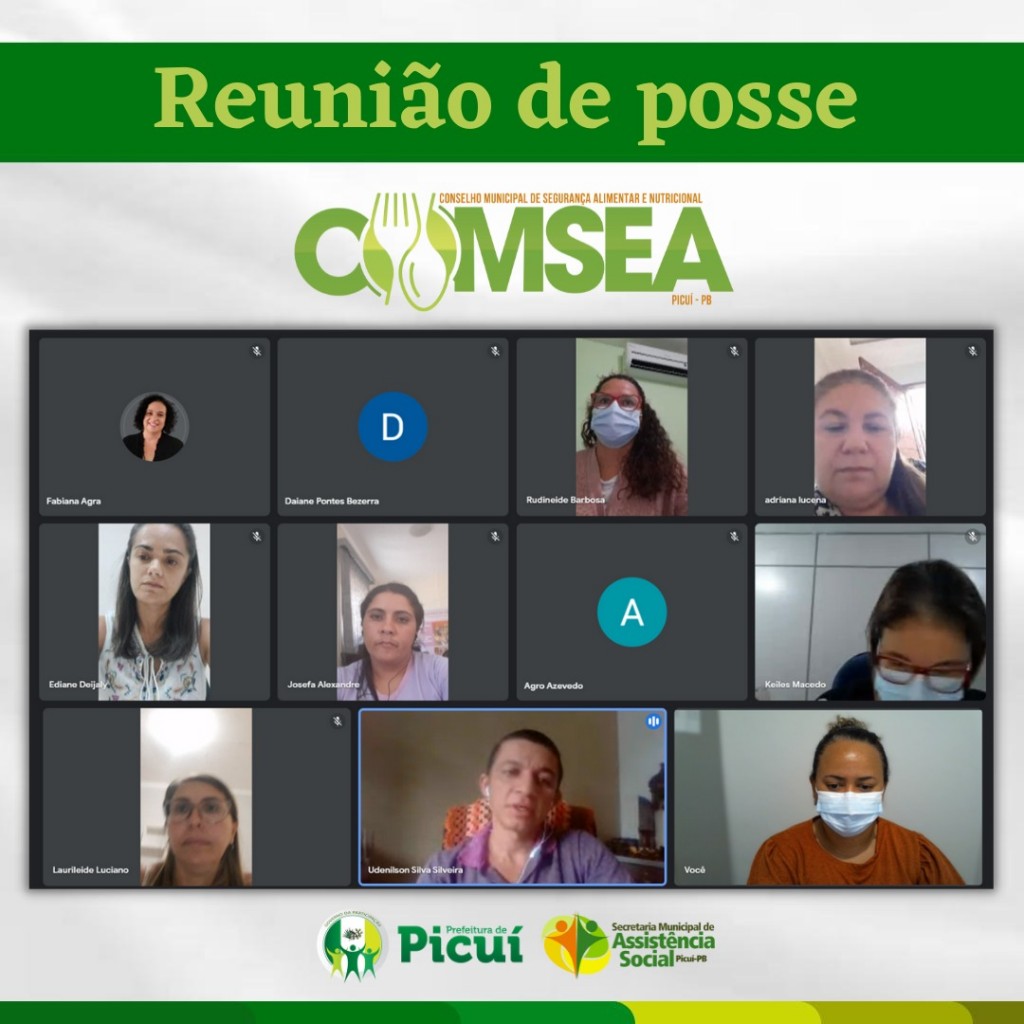 Na manhã desta última segunda-feira (12), foi realizada, através da plataforma virtual Google Meet, a reunião de posse e escolha da nova diretoria do Conselho Municipal de Segurança Alimentar e Nutricional – COMSEA, para exercício do mandato referente ao biênio 2021/2023.