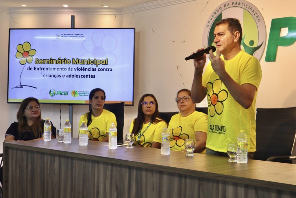 Na manhã da última segunda-feira (13), aconteceu no Auditório da Prefeitura de Picuí, a solenidade oficial de abertura do Seminário Municipal de Enfrentamento às Violências contra Crianças e Adolescente. Na oportunidade, estiveram compondo a mesa de honra, o prefeito constitucional, Olivânio Remígio, a secretária de Assistência Social, Rejane Miranda, a secretária de Saúde, Janaína Almeida, a representante da Secretaria de Educação, Maria de Fátima (coordenadora da equipe técnico-pedagógica), a representante da rede de proteção da criança e do adolescente, a vice-presidente do CMDCA, Josiane Menezes, a coordenadora da Proteção Social Básica, Neuma Dantas, a coordenadora da Proteção Social Especial, Jaira Rízia Lima, a representante do Conselho Tutelar, Emanuelly Araújo, e o representante do Legislativo Municipal, Jean Barros.