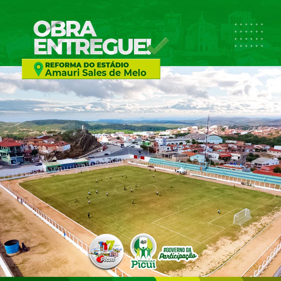 Nesta manhã (07), o prefeito Olivânio Remígio, a secretária de Educação, Cultura e Desporto, Guia Lucena, o Diretor de Esportes, Adriano Bento, e os demais secretários municipais inauguraram oficialmente o novo gramado e a reforma do Estádio Amauri Sales de Melo. Mais um feito do Governo da Participação, em prol do esporte picuiense.