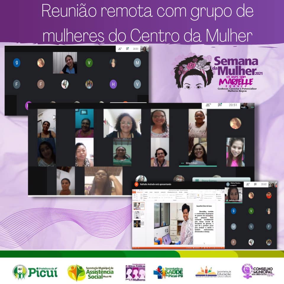 Para além das reuniões, a Prefeitura de Picuí, bem como a Secretaria de Assistência Social, o CRAS e o CREAS estão promovendo momento de reflexão nas redes sociais com publicações informativas, para além de vídeos produzidos com temáticas referentes às mulheres que marcaram a história do Brasil e do mundo. Para ter acesso a estes conteúdos, basta seguir as redes sociais oficiais e acompanhar toda a programação.