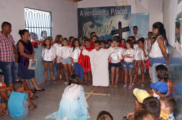 Nesta quarta-feira (01/04), as crianças e os adolescentes beneficiários dos Programas Sociais comemoraram a Páscoa Cristã, com a realização de apresentações de danças, encenações e músicas.