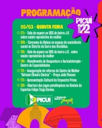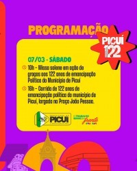 O município de Picuí se prepara para celebrar seus 122 anos de Emancipação Política com uma programação ampla e diversificada, que une ações voltadas à saúde, cultura, esporte, infraestrutura, fé e cidadania. De 02 a 22 de março, a cidade vivenciará dias intensos de atividades que reforçam o compromisso com o desenvolvimento e a valorização da população.