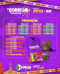 A Prefeitura de Picuí confirmou a nova data para a 9ª Corrida de Emancipação de Picuí, evento esportivo que integra a programação comemorativa pelos 122 anos de Emancipação Política do município. A corrida será realizada no domingo, dia 29 de março, e promete reunir atletas, corredores amadores e amantes do esporte em um momento especial de celebração, saúde e integração.