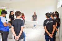 Durante o primeiro encontro, os usuários do projeto, com idades entre 14 e 17 anos, tiveram a oportunidade de conhecer a equipe responsável pelas atividades, além de visitar o laboratório de informática, espaço onde serão realizadas as aulas ao longo do ano.